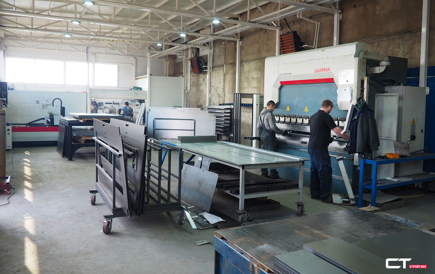 На производственных площадках «СТРОЙТЭКС» осуществляется полный цикл изготовления ворот, дверей, люков различной сложности.